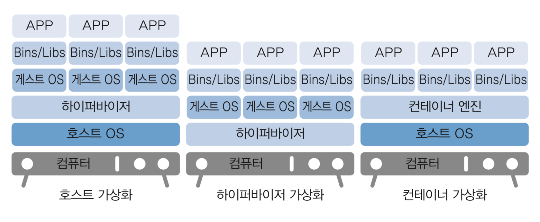 - 하이퍼바이저 (호스트 가상화 단점보안, 호스트 OS가 없어지면서 훨씬더 가볍게 사용가능)