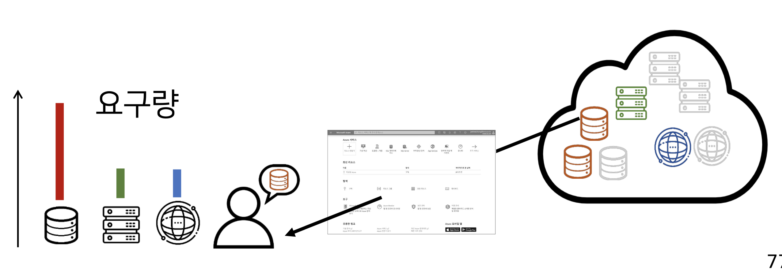 | 신속한 탄력성 | 1) 사용량에 따라 리소스를 확장 및 축소할 수 있는 자동화기능 2) 사용자는 추가 리소스 사용량에 대한 비용 만을 추가적으로 부담하여 가용 컴퓨팅 리소스와 요금 측면에서 탄력성을 가짐 ![]() |