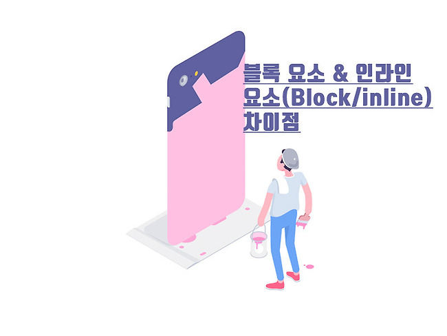 블록 요소 & 인라인 요소(Block/inline) 블록 요소는 박스, 인라인 요소는 텍스트를 의미합니다. 블록 엘리먼트(Block Element) 독립된 박스 영역으로, 한 줄에 하나에 블록 요소만 표현 할 수 있습니다. 블록 요소에는 블록 요소와 인라인 요소를 포함 할 수 있습니다. , , , , 인라인 엘리먼트(Inline Element) 독립된 텍스트 영역으로, 한 줄에 여러 개의 인라인 요소를 표현 할 수 있습니다. 인라인 용소에는 블록 요소가 포함 될 수 없지만, 인라인 요소는 포함 할 수 있습니다. , , , , image출처 : https://cdn.dribbble.com/users/103909/screenshots/3311170/sixbase-preview-04.png